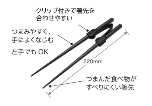 - クリップ付きで、箸先を合わせやすいので、握力が弱まったり細かい動作が不自由な方にもお使いいただけます。